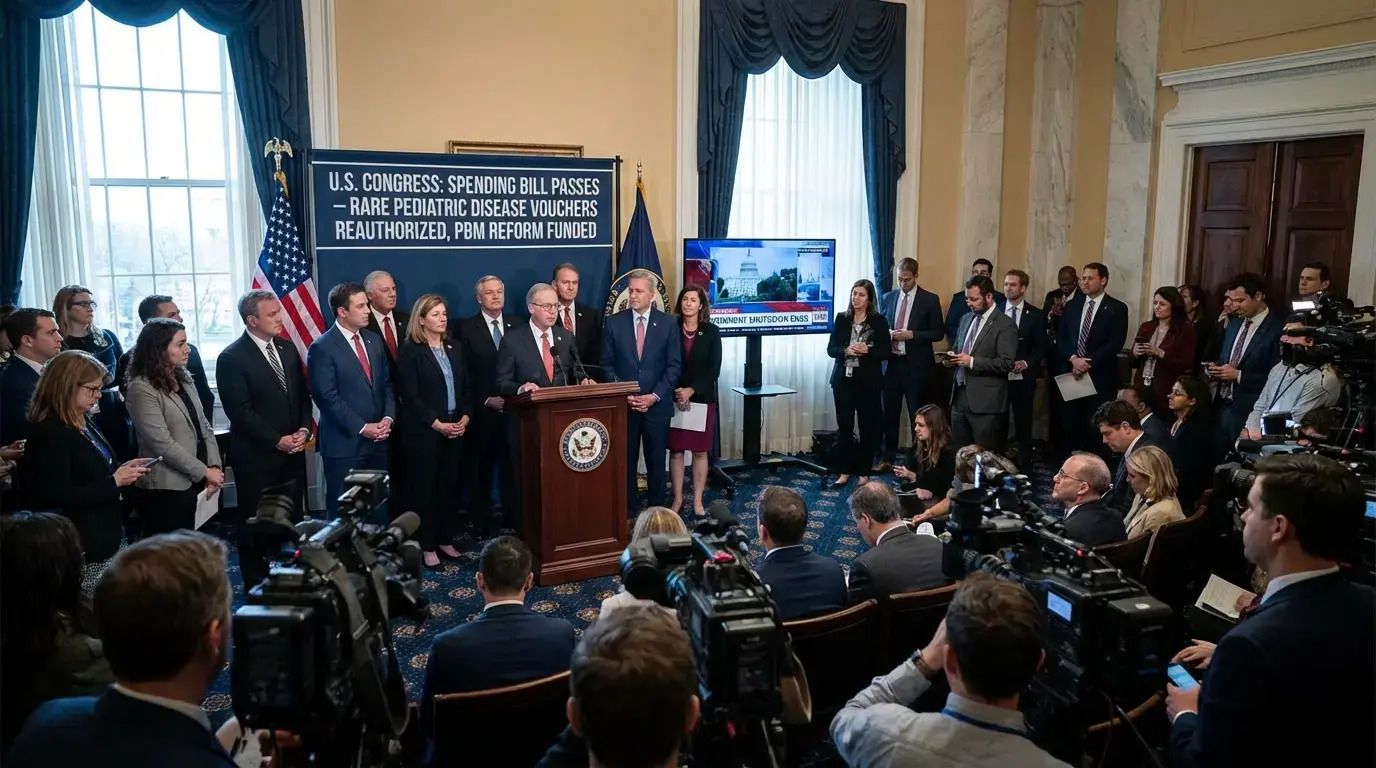 BioIntel reports that the U.S. President signed a spending package into law that reauthorizes the FDA’s rare pediatric disease priority review voucher program, restoring a key incentive mechanism for pediatric rare disease development. The same package also funds reforms targeted at pharmacy benefit managers (PBMs), creating a combined policy signal: incentives for innovation are being preserved, while intermediaries in the pricing and reimbursement chain face increased pressure and potential structural change. The linkage matters operationally, voucher economics can influence financing, partnering leverage, and development sequencing, while PBM reforms can shift net pricing dynamics and contracting assumptions that underpin launch strategy.